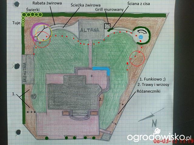 W projekcie Sylwi podoba mi się, że jest całościowy, a nie dłubanie rabatka po rabatce. Ja bym nieco zmodywfikowała linie rabat. Na pewno nie zbyt mi leży się Twoja propozycja "wklęsłej rabaty" przy drewutni. Wygląda dziwnie. Jak mnie uczyła p. Beata Gawryszewska najpierw się widzi kontrucję ogrodu czyli kształt rabat, a potem całą resztę. Ta wskazówka jest bardzo cenna
