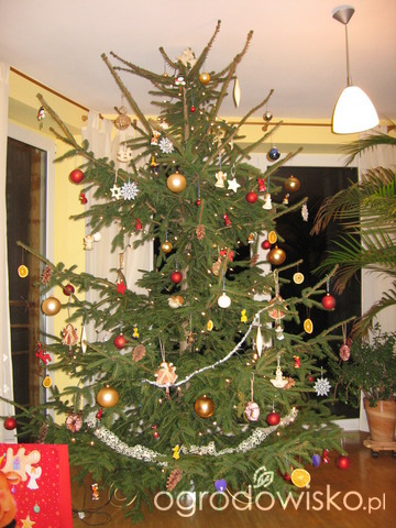 To ja jeszcze swoją chojkę wkleję. Chojka jak chojka, ale jaki stojak mój M wykonał! Postanowiłam, że go pochwalę, bo jest za co. No nie! Nie zrobiłam samego stojaka, a tu nasz znak ogrodowiska stojak zasłonił