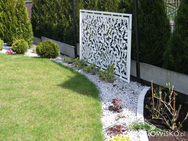 Wreszcie panel, który będzie pełnił rolę ogrodowego obrazu opóścił garaż. Nie jest jeszcze właściwie posadowiony, ale już coś widać. Dołem będą trzmieliny, a obok dam szmaragda, którego będę ciąć (jeszcze nie wiem jak). Tak to się prezentuje: