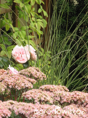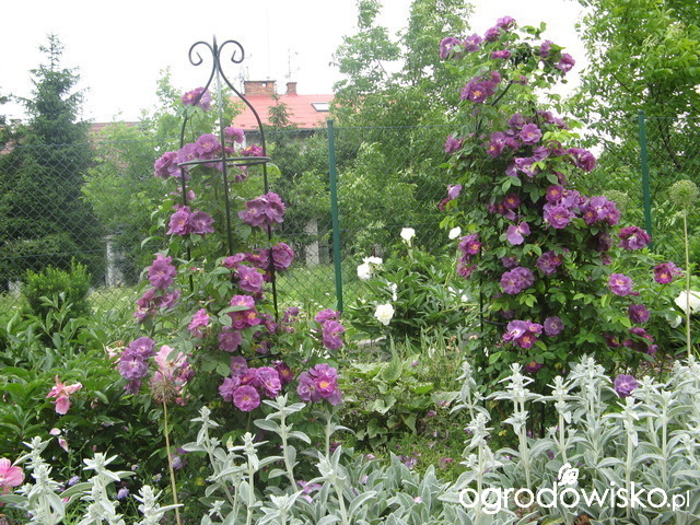 Marzenko, witam Cię, popieram w pełni takie połączenie kolorystyczne, u mnie akurat odwrotnie ma być purpura na dole, a jasny róż na górze, obok też jest pnąca jasnoróżowa. Dzisiaj czytałam ciężki dzień u Ciebie, więc taka spokojna kompozycja.