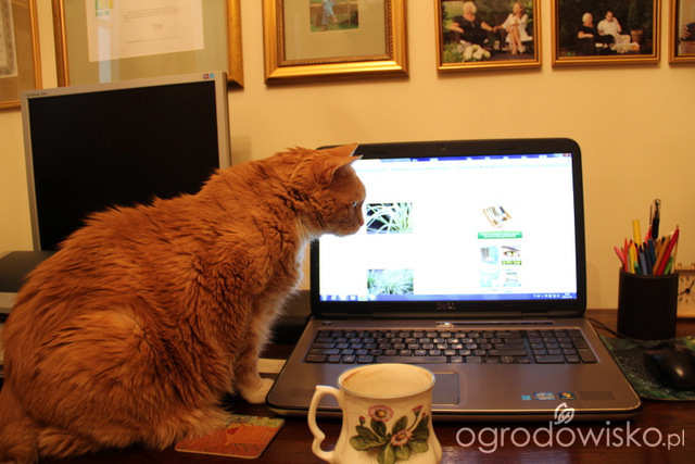 Koty w wątku się u mnie pokazały, Jak fajnie, to na pocieszenie, że mi dwa naraz odeszły A rankiem jak zajrzałam na Ogrodowisko przed wyjazdem to miałam takie towarzystwo, Prezes przypatrywał się na to mrugające oczko z reklamy. A ta widoczna trawa to nowy artykuł.