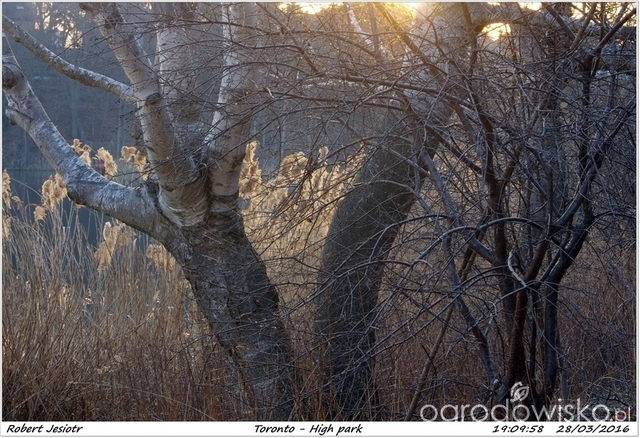 Witam Was cieplutko i dziękuję za odwiedzinki. U mnie tydzień ciepły ale weekend ma być zimny, jeszcze czekam z jeżdżeniem do pracy ale myślę że jeszcze tydzień przeczekam i ruszę. Byłem już na zewnątrz, popatrzyłem co już wychodzi, hiacynty już szykują się do kwitnięcia i tulipany już mają 15 cm. 3 noce były po 8°C, więc ciepło się robi i tylko patrzyć jak zacznie wszystko na potęgę wychodzić. Roboty na mnie czeka co niemiara, na razie pozbierałem śmieci. Śniegu nie było to i liści nawiało, trawy czekają do ścięcia, naśmieciło się z nich a najgorsze to wycinka rdestu japońskiego, jest tego cały zagajnik, jedyna zaleta że jest kruchy i się dobrze tnie i super próchnica na kompoście się robi. Tak to po staremu i dużo roboty ostatnio. Pokażę jeszcze kilka niedzielnych fotek z High Parku. Na przedostatnich zdjęciach, fota nr 6 widać w tle jezioro Ontario, szkoda że nie zrobiłem ze statywu, wyszła by lepsza głębia. Pozdrawiam z ciepłego i deszczowego Toronto. Teraz o 22 zrobiła się burza nawet zdrowo grzmi.