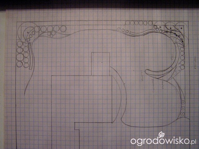 Naprzeciwko tarasu chciałam jakieś drzewko wkomponować i myślałam o powtórzeniu hortensji ale innej odmiany np. vanilla fraise 3 sztuk na przemian z miskantami tak jak Danusia zrobiła w ogrodzie z lustrem. na tej wypukłej rabacie przed brzózkami może jakiegoś świerka by dać? Mam też modrzewia szczepionego właśnie w tych okolicach może by się skomponował?