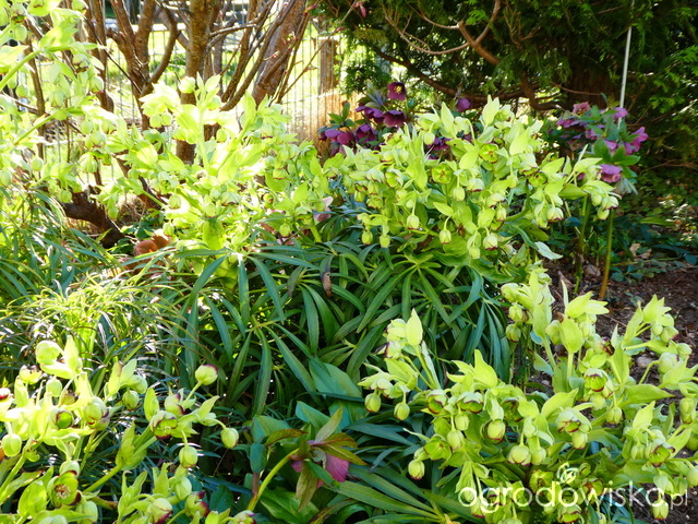 Jola pięknie grają ze sobą ciemierniki cuchnące i bordowe