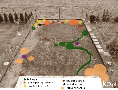 Drugi mój typ - po prawej, blisko najdalszego zanku zapytania, ale jakieś 4-5 kropek bliżej tarasu ( kropki którymi zaznaczyłas brzeg rabaty)- żeby ono zaczynało ten 'język'.