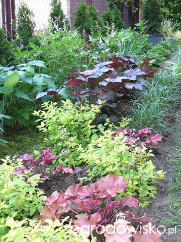 I jeszcze cofnęłam sie kilka stron wstecz. Tuj nie wycinaj..... Hosty lub rodgersja (u mnie do zobaczenia) lub trzmielina np strzyżona w półkule zasłoni nózki, jeśli tam jest cień(????)