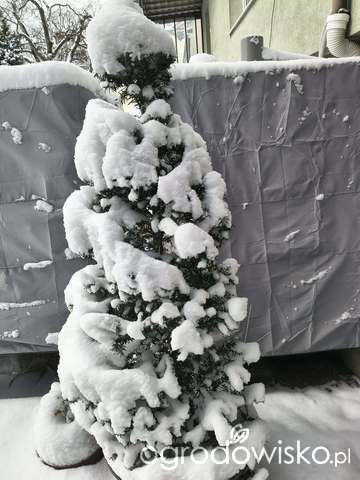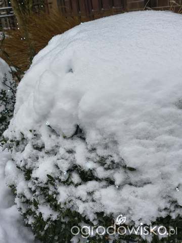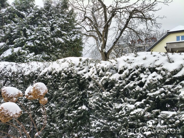 Odśnieżam prawie na okrągło, ale cieszę się z tego śniegu jak dziecko, bo rabaty dostały puchowe, grube kołderki. A spod tych kołderek powoli sączy się woda do ekstremalnie przesuszonej gleby. Wspaniała - dawno nieobecna - retencja.