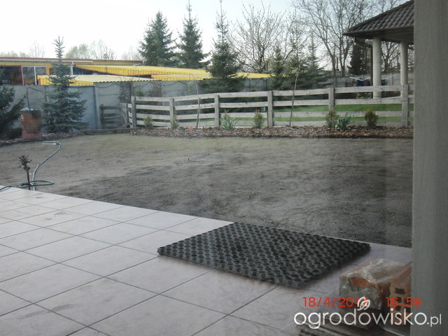 Na pierwszym zdjęciu widać dwie brzózki z których jedna chyba przemarzła wypuściło parę listków. Obok posadzone są 3 derenie a z brzegu posadzona jest lawenda. Brakuje mi pomysłu co posadzić przy bruku i nie ukrywam, że liczę na Wasze pomysły.