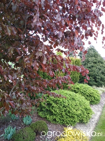 Brakuje mi koloru w ogrodzie. Mam już jednego buka szczepionego na pniu i przymierzam się do kolejnego. Co sadzisz pod nim? U mnie będą różowe azalie i sosna Brepo.