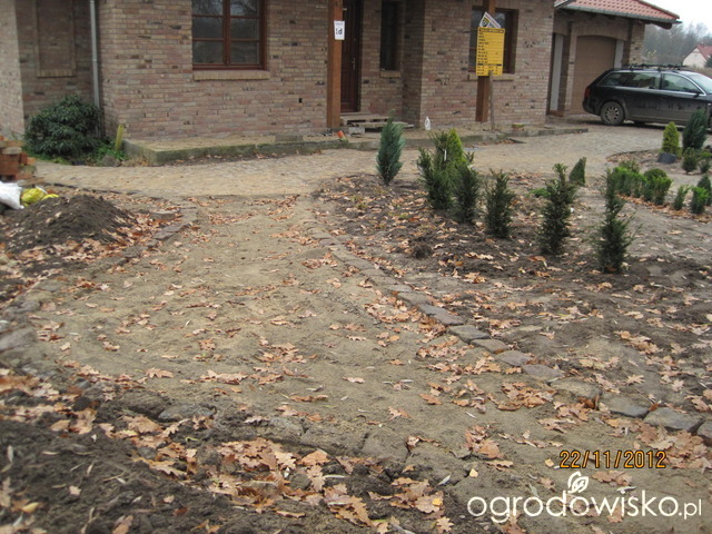Nie wiem w końcu co z twoim przedogródkiem, czy na osi głównej ścieżki to posadzone rośliny, czy tylko zadołowane?