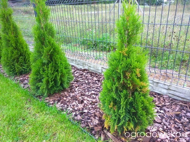 Nie stała tam woda. Pod tą jedyną tują jest oczko gliny. Jak wykopałem (a właściwie to wywierciłem) otwór pod tuję i przeszedł akurat deszcz, to widziałem że w tym dołki woda po prostu stoi, zniknęła dopiero po paru godzinach. Więc wybrałem jeszcze ile się da tej gliny a na jej miejsce wsypałem takiej pod iglaki z worka. Widocznie za mało, nie wiem.