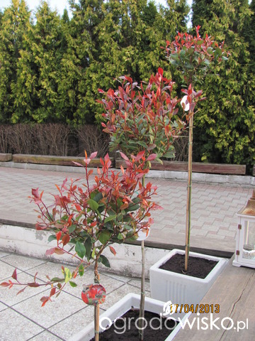 i oto głogownik Red Robin, są trzy wymiary szczepienia; 120, 80, 60; dołem wysieję wielokolorową werbenę płożącą
