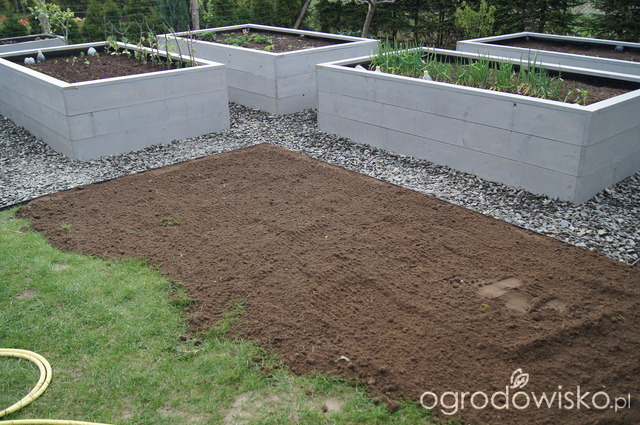 Ogród warzywni mam na około 140 m2 i (prawie) cały jest w skrzyniach o wysokości 20-40 cm. Przygotowałem je z nieimpregnowanych desek sosnowych o grubości 2,5 cm. Nie zabezpieczałem ich folią i niczym nie malowałem. Zabieg ten był celowy - gdy się zużyją wrzucę je do nowych skrzyń. Skrzynie budowałem, ponieważ mam glinę (żyzną, ale trudną w uprawianiu). Wypełniłem je glina pomieszaną z ziemią z worków, żwirem i torfem odkwaszonym. Muszę powiedzieć, że jestem zadowolony z takiego sposobu uprawy. W 2017 roku praktycznie tylko pomidory i papryki się nie udały (mokro, grad, wichura).