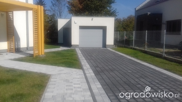 L-ka znajduje się o ok. 30 cm. niżej od poziomu małej donicy i wyniesiona jest 30 cm ponad poziom kostki brukowej.Donice oddzielają chodnik wejściowy do domu od wjazdu do garażu.