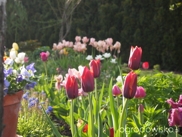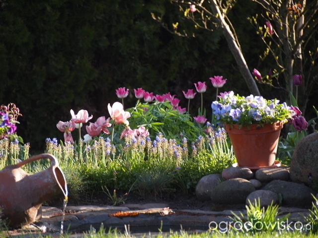 Cudne widoki Paw się wynurza z zieloności, łany tulipanów wzięły ogród w posiadanie a wzrok przykuwają urocze dzbanuszki i donice, z których się wylewa woda albo kwiaty Sentymentalna się robię od takich widoków