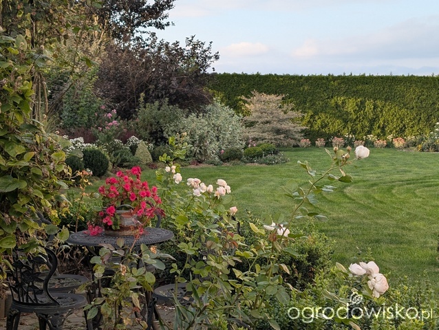 . Jesienny ogród przepiękny, bardzo nastrojowy. Dużo róż u ciebie kwitnie. I pięknie kwitnie hebe, bo to chyba ono.
