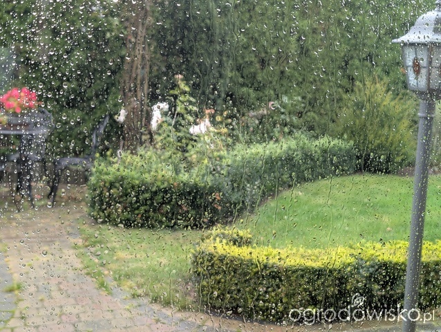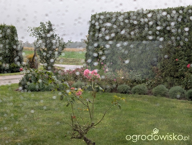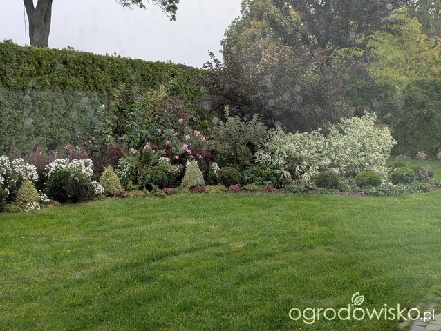 . Jesienny ogród przepiękny, bardzo nastrojowy. Dużo róż u ciebie kwitnie. I pięknie kwitnie hebe, bo to chyba ono.
