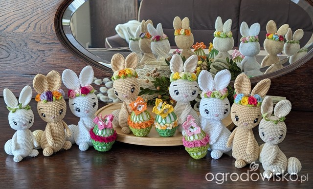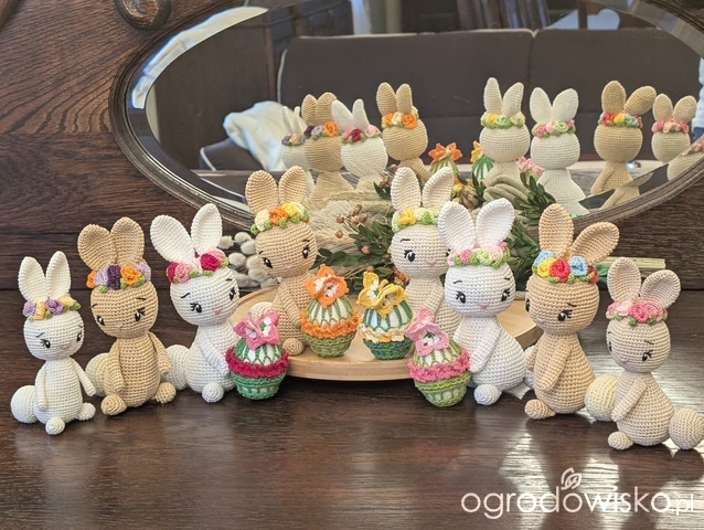 Przebiśniegi i ranniki w imponującej ilości, wiedziałam, że tu na pewno wiosna już się rozgościła. Króliczki prześliczne i takie dopracowane. Też kiedyś miałam w planach, że zrobię jakieś maskotki, ale ja tylko swetry robię. Nawet nie nadążam ich ubierać.