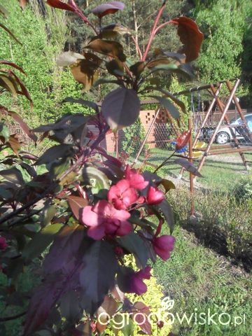 Rajska jabłoń, nie wiem czy to jeszcze czerwony czy już bordo albo nawet brąz we wiosennej i jesiennej odsłonie