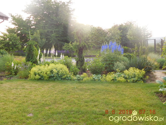 Dobrze mieć takiego sąsiada z takim nawet sztucznym deszczem. U nas też sucho i gorąco. Zapowiedzi były i nadzieję ale deszczu nie było. Jutro mam imprezę w plenerze nad rzeką to pewnie jak na złość wtedy tam popada... Twoje ostróżki cudne - nie narzekaj - u mnie po dwukrotnych próbach nie wzeszły po zimie więc już odpuściłam. Trudno - jedne rośliny u mnie wychodzą a drugie nie i koniec. Ostróżek więc u mnie nie będzie. Lilie posadziłam w tym roku po raz pierwszy - ok 10 sztuk - wzeszła 1 sztuka. Czyżby i lilie były nie dla mnie?