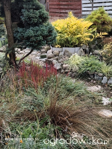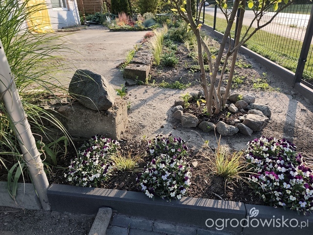 I jest tam jeszcze bliżej betonu Stipa Pony i środkiem Fotergilla i zielony cyprys i zasłonięte