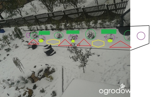 mam do zagospodarowania kawałek od frontu, przy płocie sąsiada gdzie rosną świerki.Od kostki w stronę płotu jest lekki spad, ze względu na murek płotu nie mogę zupełnie wyrównać tego obszaru.