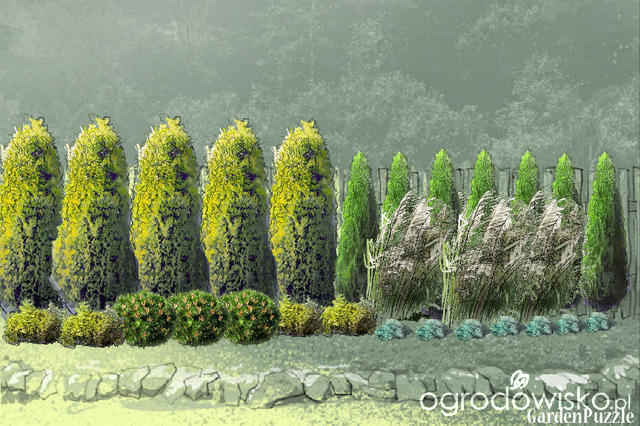 Mam jeszcze 7 jałowców blue star. Czy za nim może rosnąć trawa typu miskant zebrinus na tle żywopłotu z brabanta?
