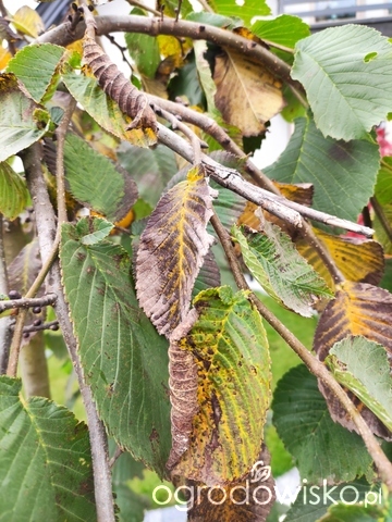 Posadzony miesiąc temu wiąz robi się coraz bardziej żółty.