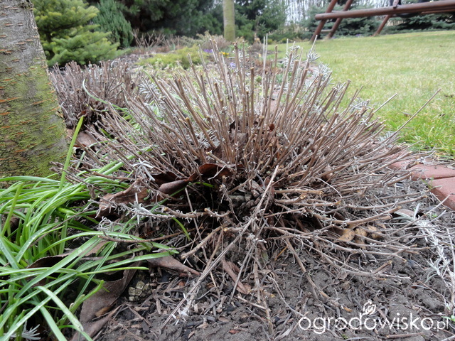 To jest 'Hidcote Blue' Co roku tnę ją troszkę niżej nawet, ale w tym troszkę ją wypuszczę wyżej. Mają teraz ok. 10 cm. To chyba ostatni rok i będzie trzeba wymienić na nowe w przyszłym. Widać, że wypuszczają już nowe przyrosty.