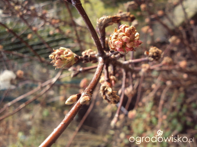 a kalina bodnantska 'Dawn'kwitła już pod koniec listopada, potem jej kwiatki zmarzły ale teraz na nowo ma świeżę pąki