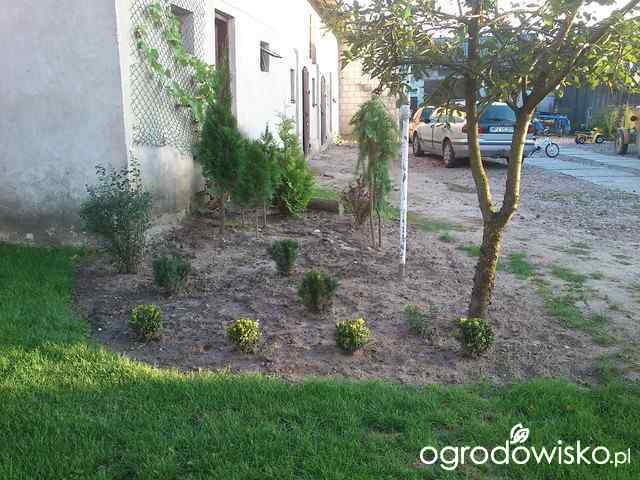 Ta rabata powstała częściowo w ubiegłym roku. Jest jeszcze nieskończona. Jesienią planuję wsadzić na niej jeszcze kilka bukszpanów i cisy pospolite – jeśli uda mi się je kupić. W naszym regionie można bez problemu kupić cis pośredni, ale z pospolitym to już jest problem. Zamówiłam sobie nawet przez internet, niestety przyszedł wg mnie jakiś inny zamiast pospolitego. Pani, od której je kupiłam przestała odbierać telefon i odpisywać na maile. Szkoda
