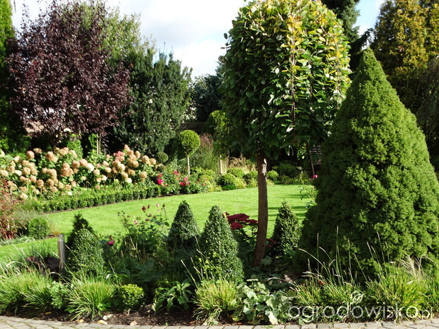 Rabatka pod brzozą ładnie skomponowana. Myślałam, że litl lime powinno się przebarwiać na limonkowo, a nie na różowo. Na razie ona jest niska, przy odpowiednim cięciu nie powinna wyskoczyć za wysoko.