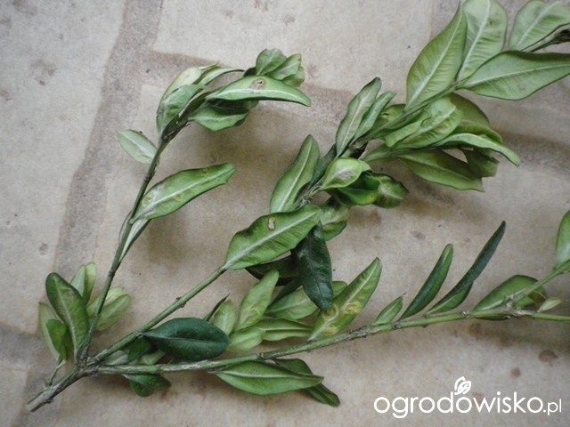 Natomiast większość gałązek, zwłaszcza tych wewnątrz krzewów wygląda dobrze i raczej zdrowo. Listki są ciemnozielone, ładnie się błyszczą.