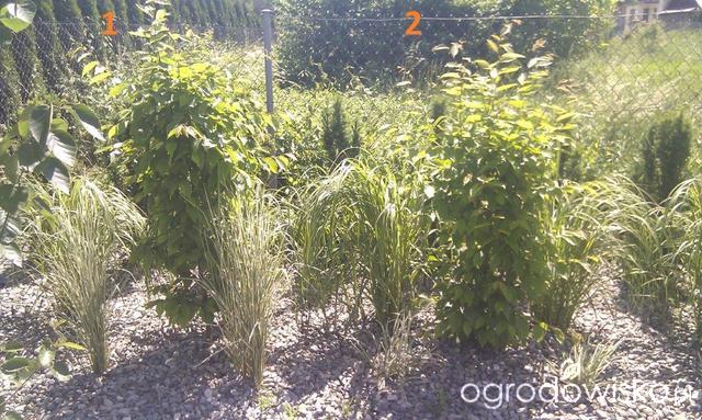 Przed grabami posadzony jest trzcinnik ostrokwiatowy a za grabami spartyna grzebieniasta. Rosną one dość nierówno, jeżeli chodzi o wysokość, ale są mocno obrośnięte od samego dołu.