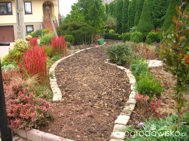 I tak nastapił koniec moich wypocin....no jeszcze nie całekiem . jeszcze trawa do posiania , na końcu ścieżki berberys do przesadzenia i dokończenie położenia kostki . kostka tymczasowo żeby się dobrze trawę siało .na wiosnę dopiero przytne kanty i albo kostka zostanie , albo kanciki .