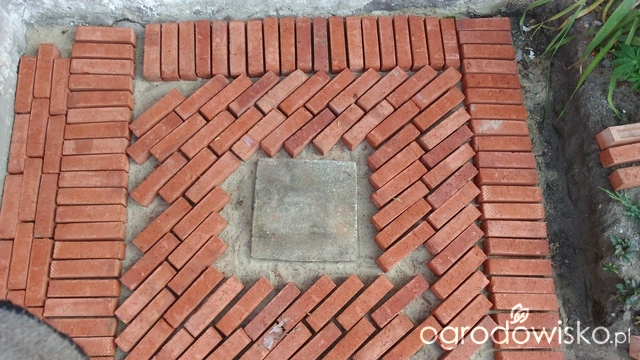 Ogólnie na chodniku ułożone są Cegły na prosto, ten placyk jest obok chodnika ale chciałem żeby się wyróżniał i dlatego po skosie, zwłaszcza że w jednym miejscu też tak położyłem
