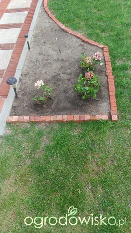 Wsadziłem 3 sadzonki ogrodowych, w sumie to nie wiem czy dobrze miejsce czy nie za bardzo w słońcu. Hmmm do południa będzie cień od domu, a po południu powinny się załapać na cień ze świerka. Zawsze można wymienić