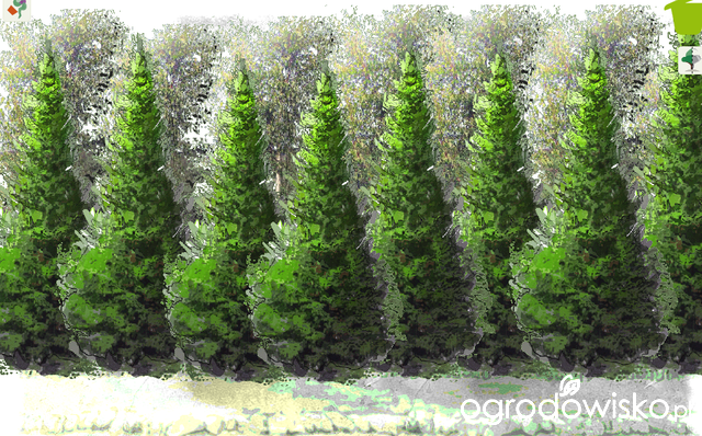 jakieś umiarkowanie rosnące jałowce niebieskie na przemian z tują 'Columna'