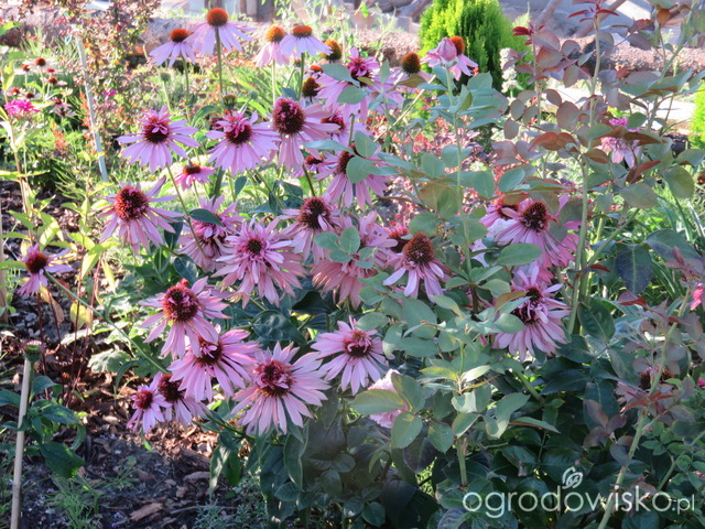 Ta jeżówka zapewne Waszych serc nie podbije, ale dla mnie jest cudna. Kupiłam ją jako jeżówkę brzoskwiniowo-różową. Okazała się kameleonem. Rozkwitając jest żółta, potem na małą chwileczkę jest brzoskwiniowo-różowa, następnie bordowo-kremowa. Tą ostatnią barwą podbiła moje serce. Mam rabatę w tej tonacji kolorystycznej więc idealnie się tam wpasowała. Rośnie w towarzystwie bordowych i kremowych liliowców, bordowego berberysa i róż. Szybko się rozkrzewia, ma dożo kwiatów osadzonych na sztywnych łodygach, nie wymaga podwiązywania.