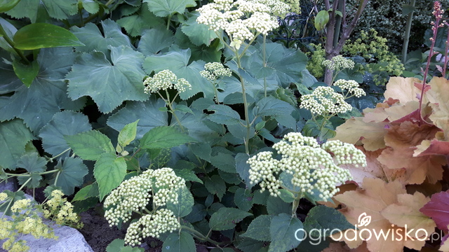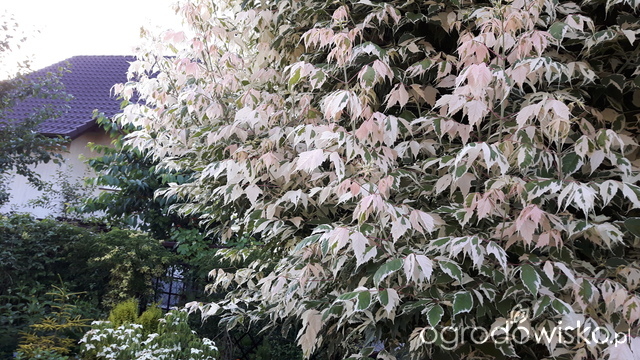 Tutaj wtrącę kilka słów o śliwie wiśniowej która daje barwny akcent nad główną rabatą. Gałęzie mają tendencję do przewieszania się w dół ( a korona jest szeroka) i to bardzo nisko co w praktyce oznacza zacienienie kilku metrów rabaty. Zdecydowałam się na bardzo wysokie podciosanie, bo lekki cień jednak służy roślinom a ogołocony pień obejmuje powojnik Etoile Violette