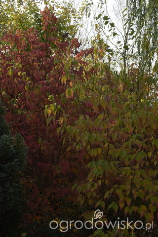 Ussyryjski słabo się w tym roku prezentuje. Większość liści zamiast przybrać czerwień od razu zbrązowiała i szybko zaczął gubić liście. Derenie nadal piękne