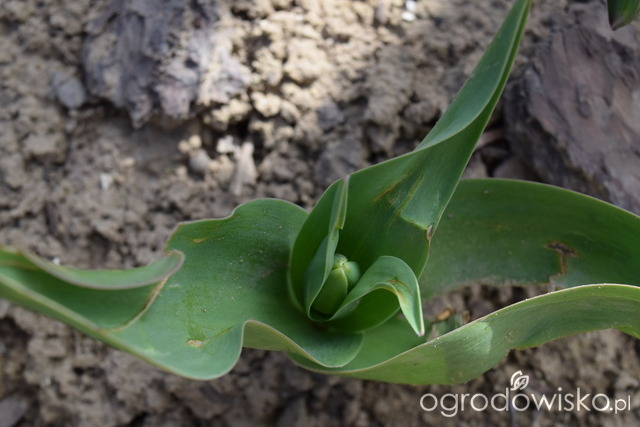 hosty i szafirki wychodzą z ziemi tulipki mają pochowane główki