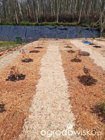 Pod samymi krzakami dałam całkiem przekompostowane trociny i igły sosnowe, w rzędach trociny trochę już przeleżałe