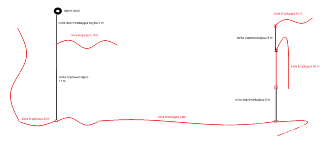 Myślałem o linii kroplującej. Dodatkowo chciałem w miarę na początku linii, zrobić odgałęzienie trójnikiem na skarpę z roślinami, by one również zaznały takiego podlewania. Skarpa ta jest 1,5m wyżej niż tuje. Wiem, że poprowadzenie linii pod górę powinno iść 'etapami'.