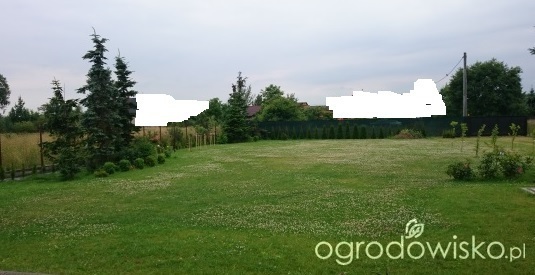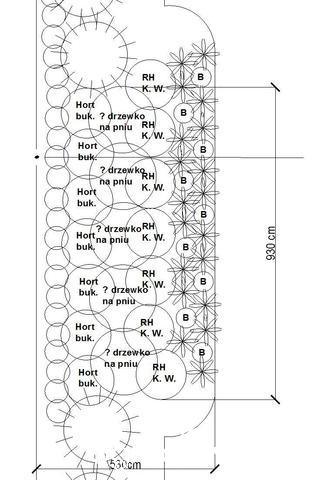 widok na stronę południowo zachodnią, tu w tej pierwszej przeriwe myslałam o posadzeniu hortensji bukietowych, potem drzewka na pniu, np graby lub klony lub jeszcze coś innego? a przed nimi różaneczniki K.W., potem niskie trawki i kulki z bukszpanów lub inne kulki. Nie wiem jednak czy to prawidłowe, czy nie powinno być odwrotnie, najpierw thuje, potem różaneczkni kuningham white potem hortensje ogrodowe - nie wiem co rośnie wyższe? Miejsca wgłąb działki mam tam sporo, chcę się pozbyć jak największej połaci trawy. Myślałam tez o wysokich trawach zamiast hortensji lub trochę tego , trochę tego. Niestety nei znam się kompletnie na gatunkach