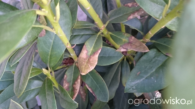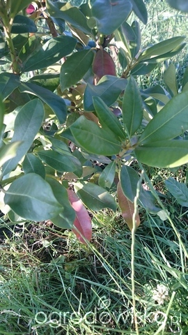 widok na zachód, tu po prawej stronie za 3 różanecznikami widoczne są młode drzewa i krzewy owocowe