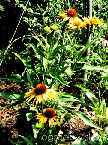 Nie pasował mi kolor róż The Fairy do żółtych cyprysików i zamieniłam je na jeżówki. Rosną tam jeszcze róże Gartnerfreude, ale one kolorystycznie nie gryzą się z cyprysikami.