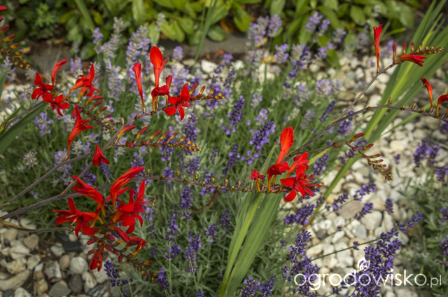 Moje ukochane Montbretie. Odważyłam się dać czerwony w przedogródku Gdzieś musi przecież być.