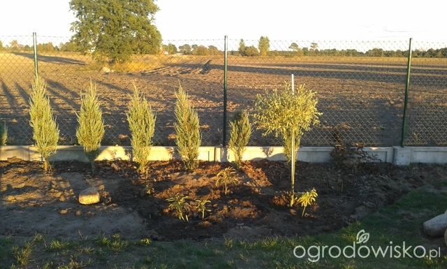 Jako tło zamierzam posadzić jałowca blue arrow - wiem, że nie jest tu polecany, ale już go mam, u mnie rośnie dość bezproblemowo i za waszymi radami muszę uporządkować mój żywopłot.