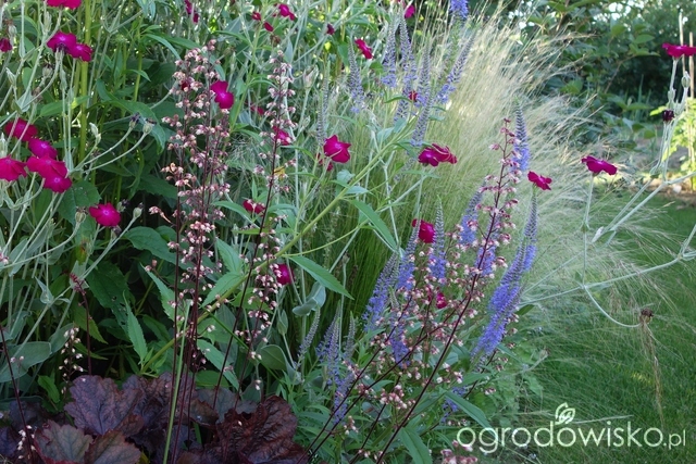 Kolory przekłamane, bo słońce już zachodziło, ale ciekawa jestem tego zestawienia. W zeszłym roku monarda cudownie współpracowała z perovskią i trawami. Dorzuciłam im jeszcze krwawnik. Firletka też tam się plącze.